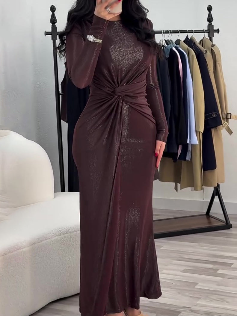 Metallic Long Sleeve Maxi Dress