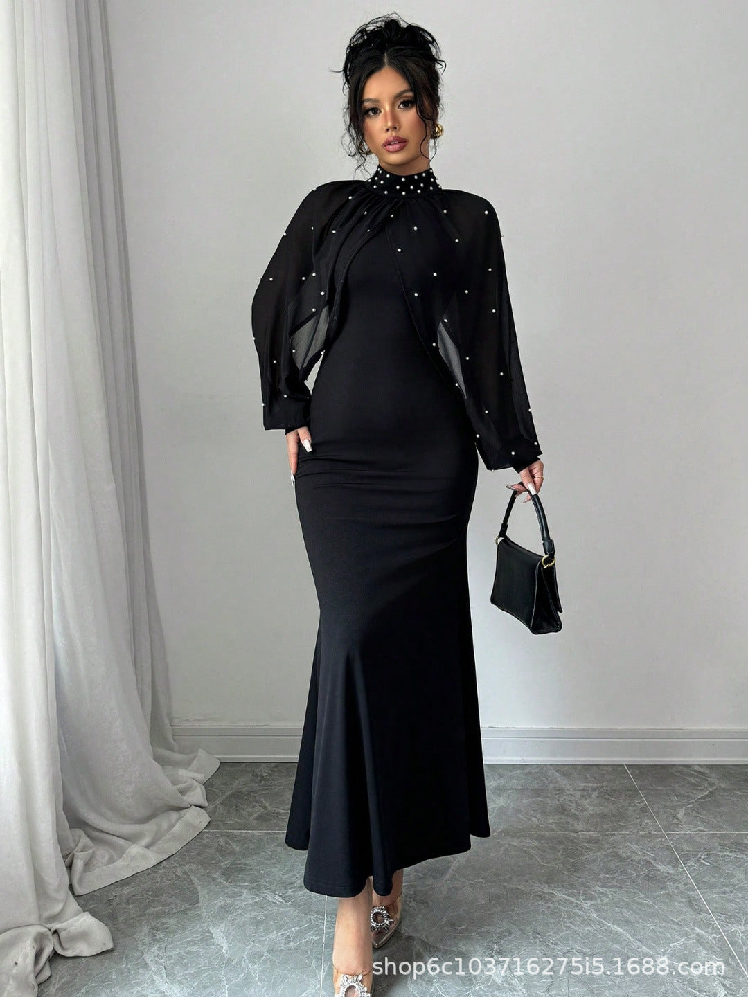Womens Solid-Color Fashionable Patchwork Bodycon Dress